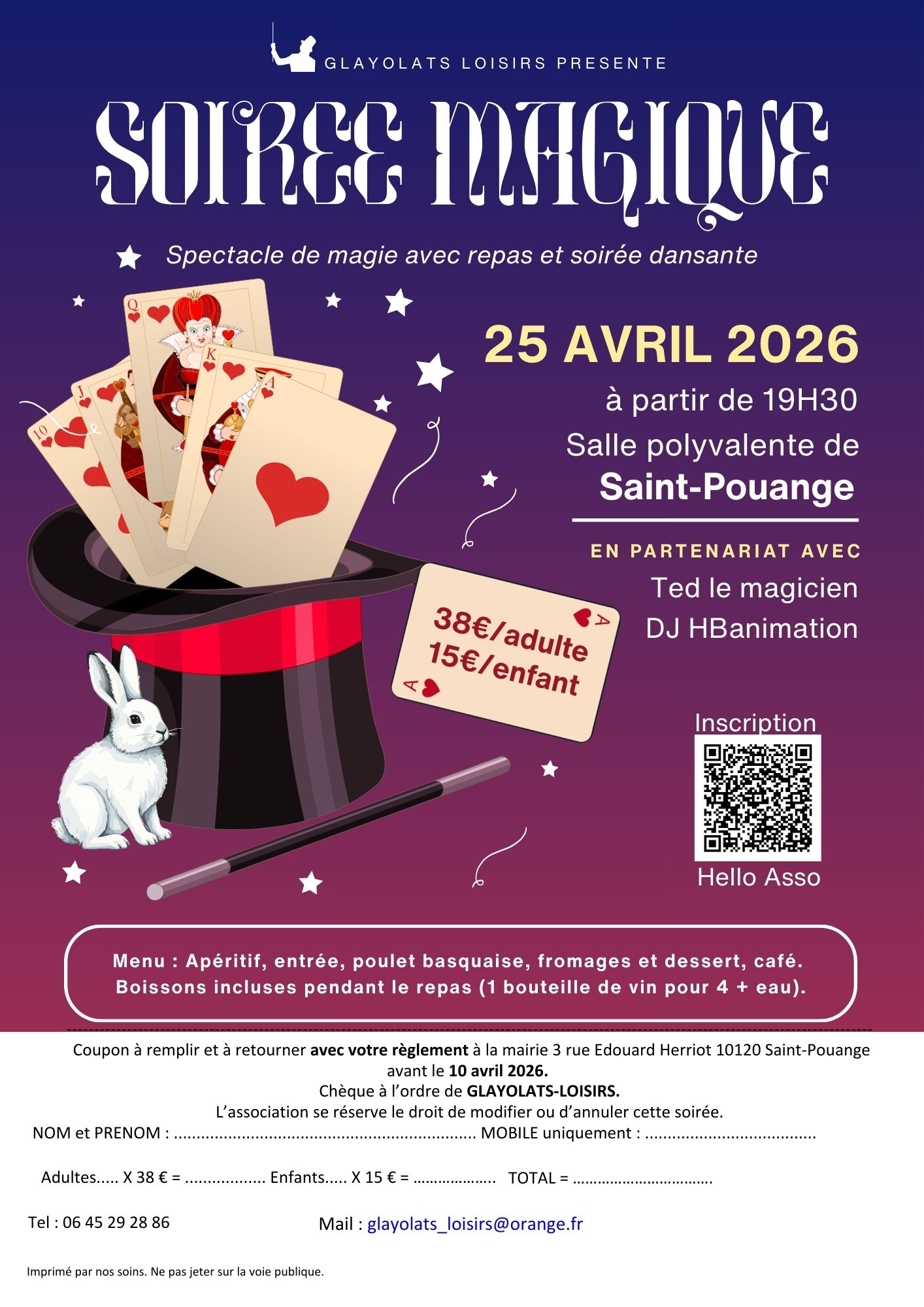 Repas avec TED le magicien et soirée dansante avec DJ HBanimation.