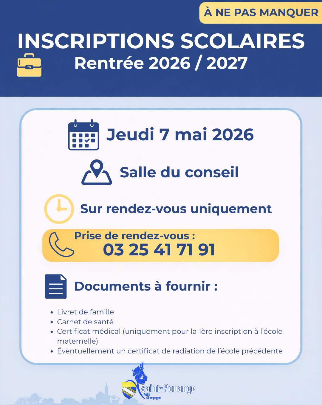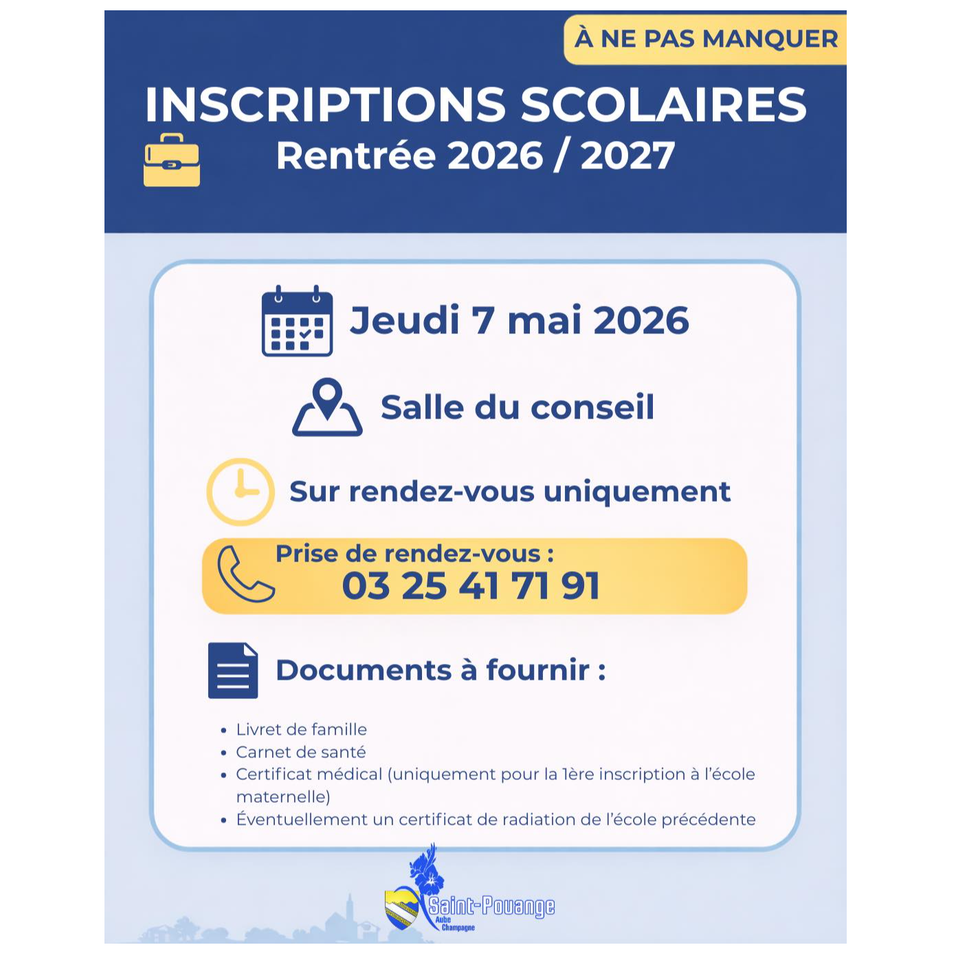 Les inscriptions pour la prochaine rentrée scolaire auront lieu :